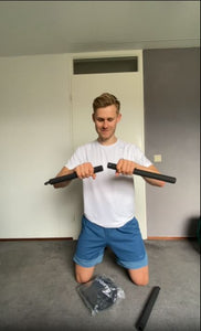 - 1 bar, 2 håndtag, 2 ankelstropper, 1 døranker og 1 opbevaringstaske.